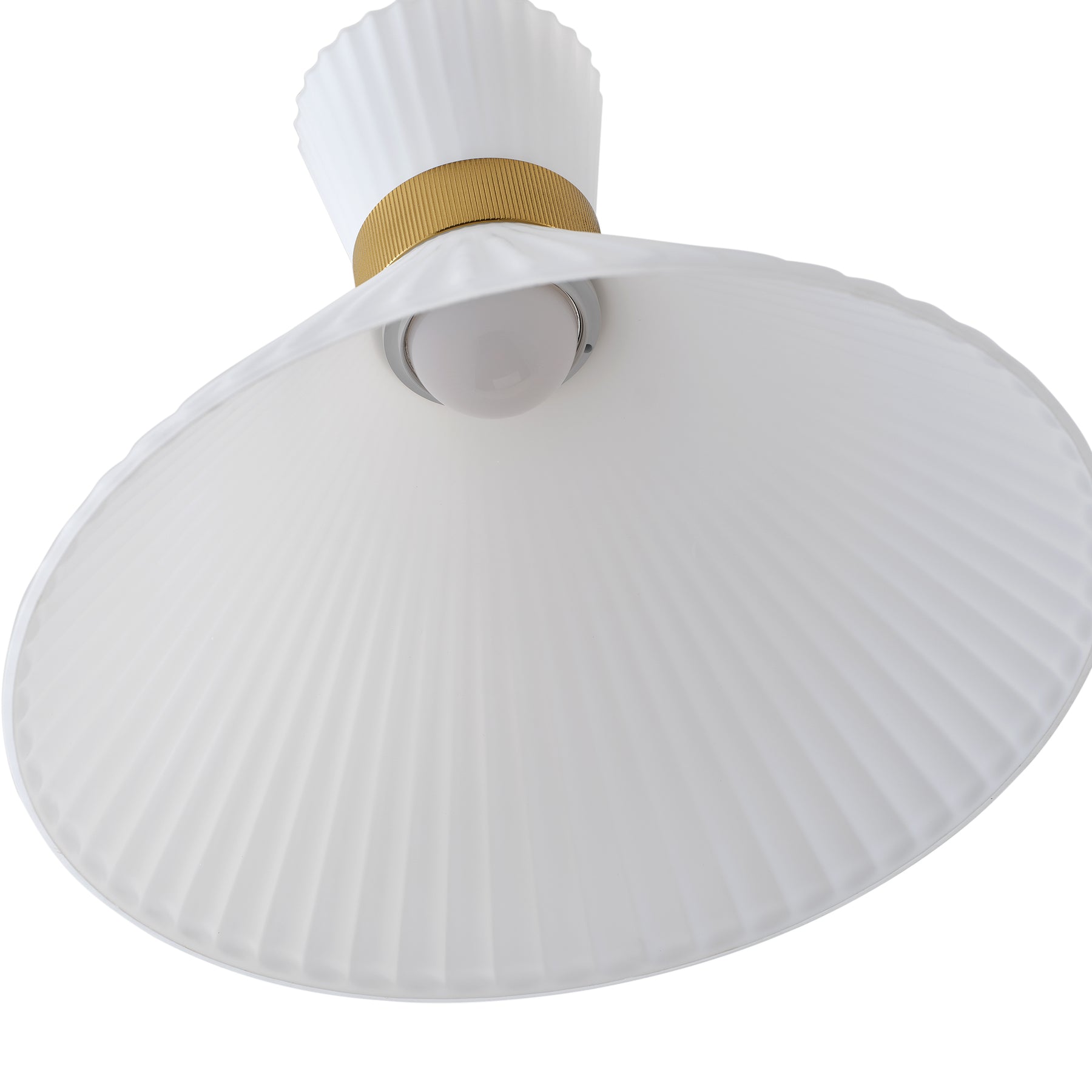 Semi flush mount with a matching brass-finish iron canopy. The stem includes a swivel joint for easier alignment. Built with 18AWG 1332 Teflon wire and bare copper ground. Professional installation is recommended.