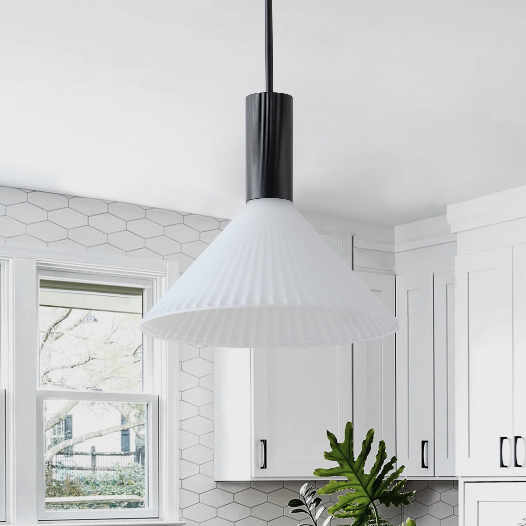 1 Light Mid Century Modern Pendant Light Trumpet Conical White Glass ETL E26