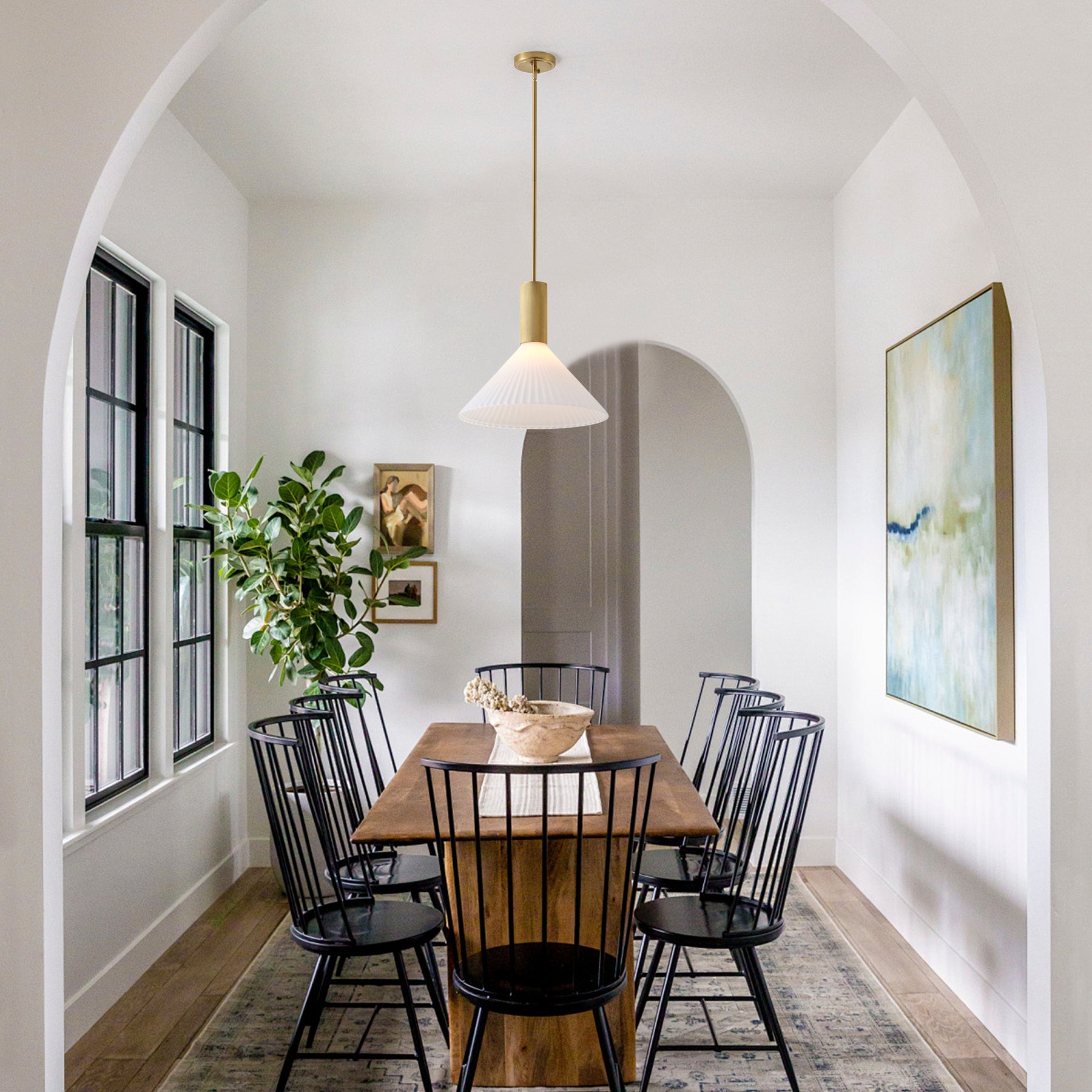 Ideal for dining rooms, kitchen islands, breakfast nooks, and bar counters. The single-light design provides focused illumination with softened diffusion through the glass—perfect for everyday lighting and warm, inviting ambiance.