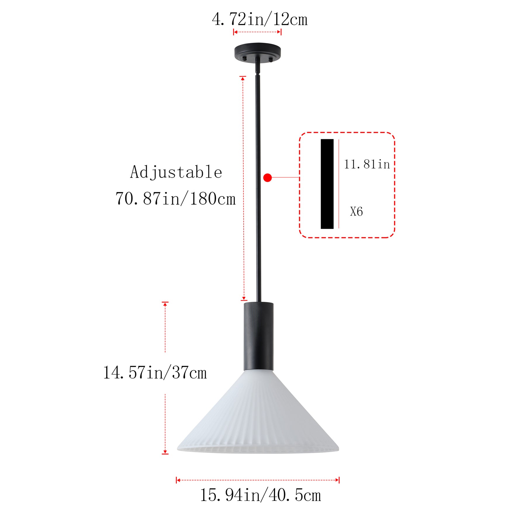 Actual Size: 15.94"D×4.72"W×85.44"H (Adjustable)