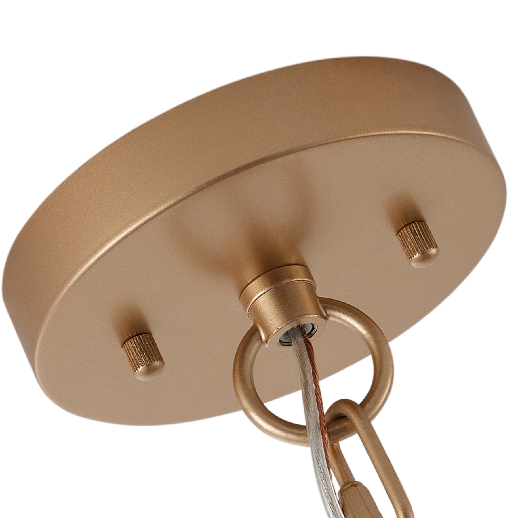 Chain hanging chandelier with a matching deep gold iron canopy for ceiling mount. Compatible with standard indoor junction boxes. Hardwired installation recommended with a qualified electrician.
