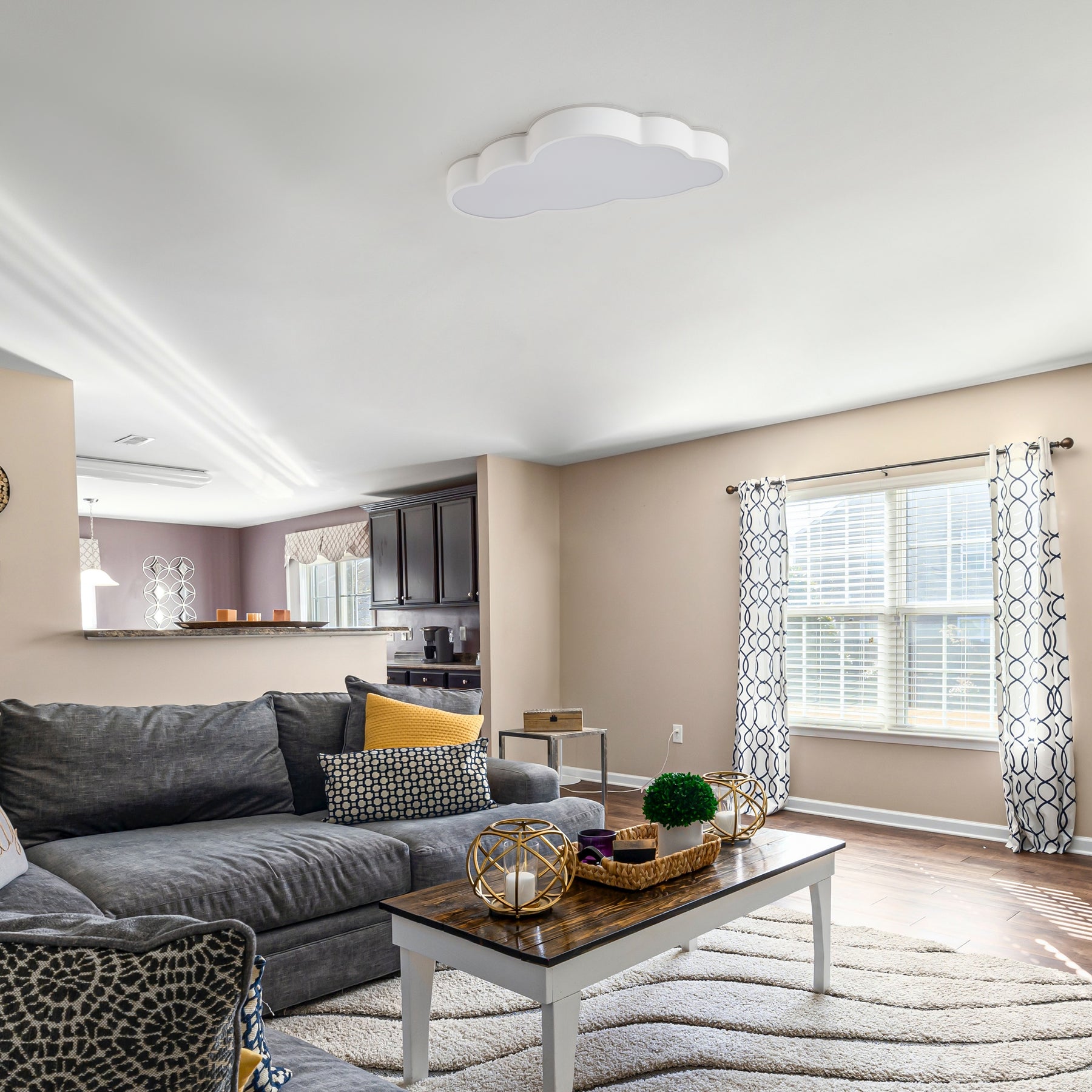 This cloud ceiling light features a built in 24W LED that delivers about 1920 lumens at 120V with CRI 80+. It offers 5CCT selectable color temperatures and wall switch dimming so you can easily adjust both brightness and light color. ETL certified with 18AWG wiring for safe use in kids spaces.