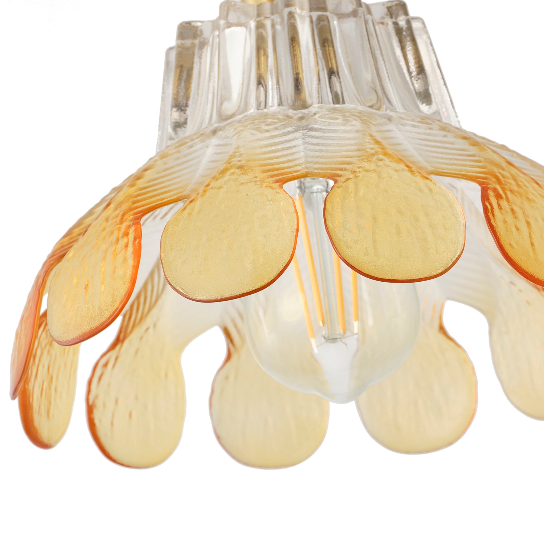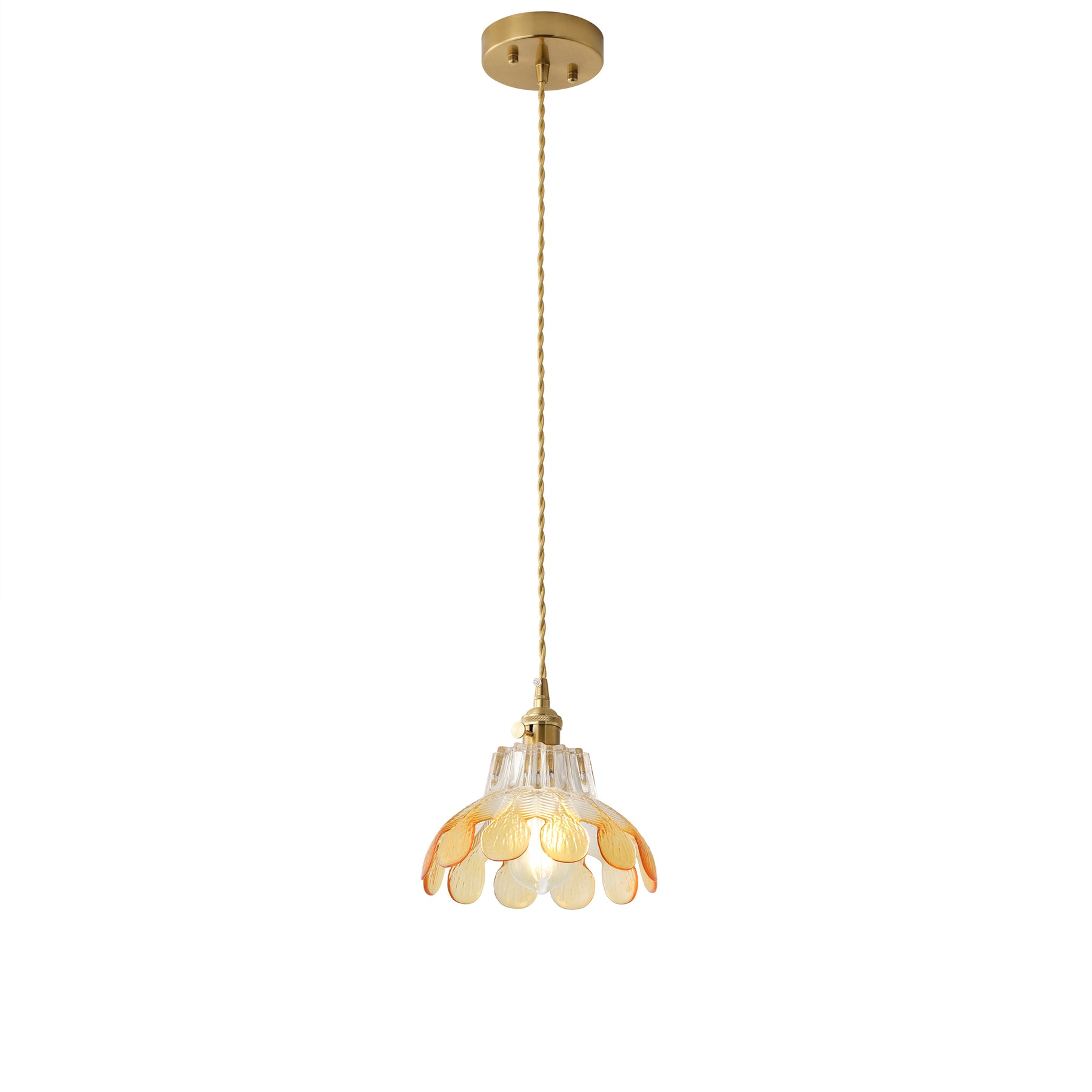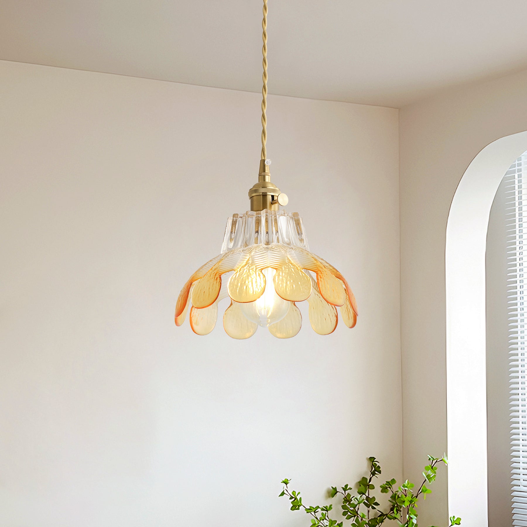 A lotus-inspired floral silhouette with layered glass creates a soft vintage statement. The textured gradient glass adds depth and warmth, while the copper-tone finish brings a refined retro look.