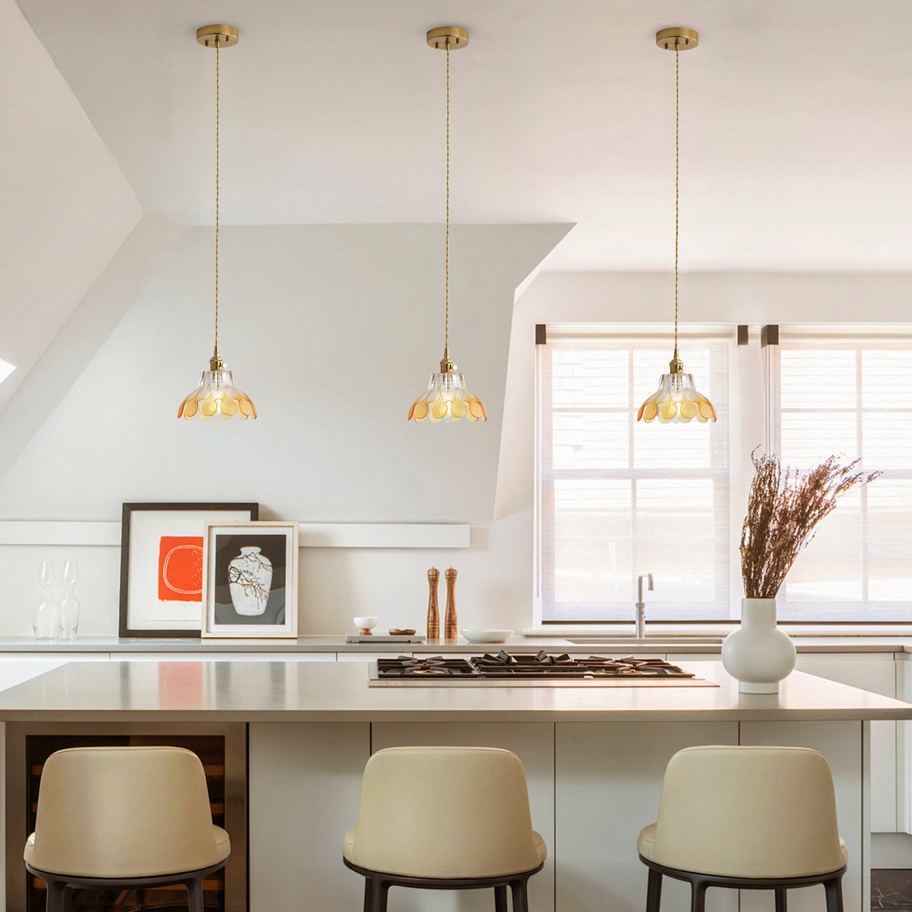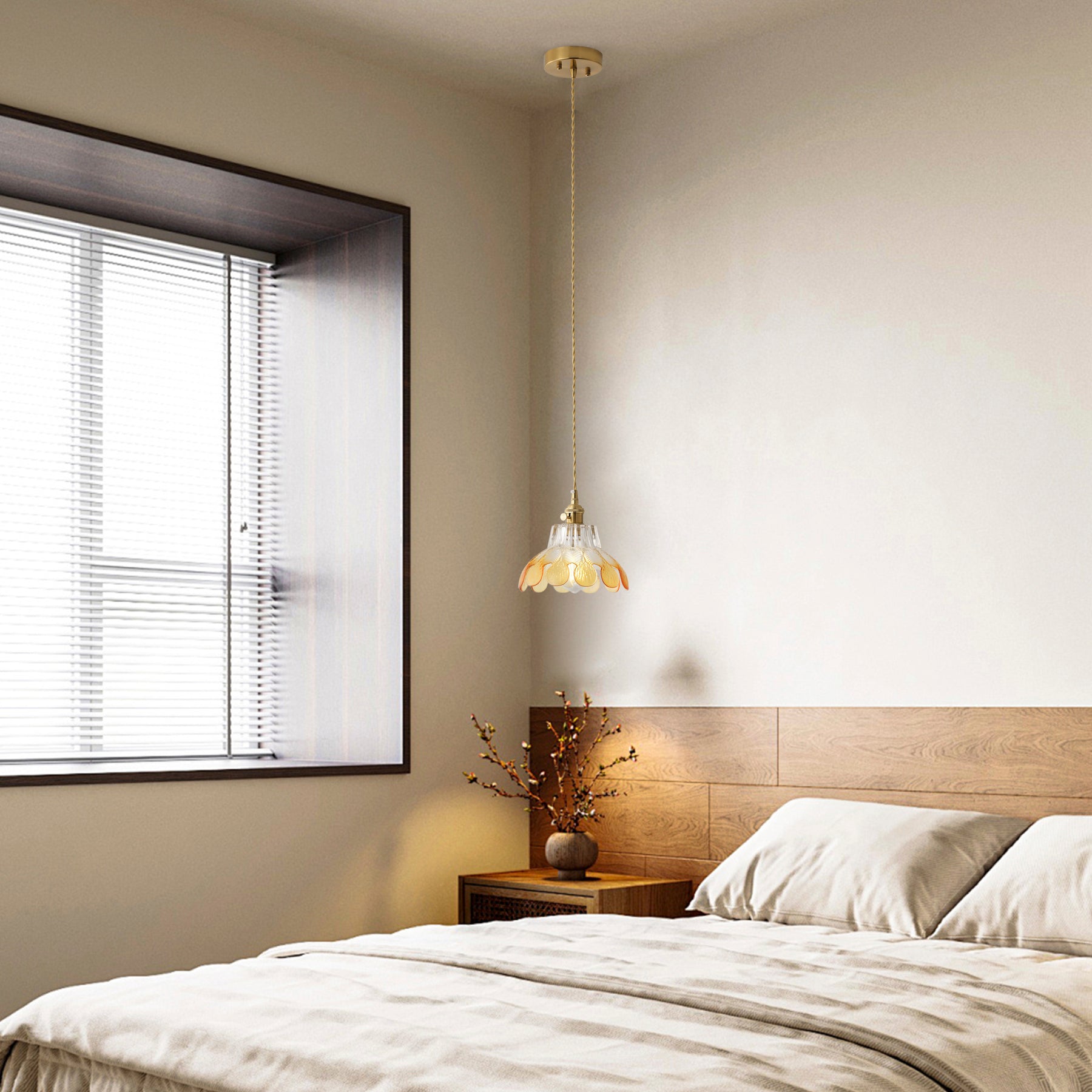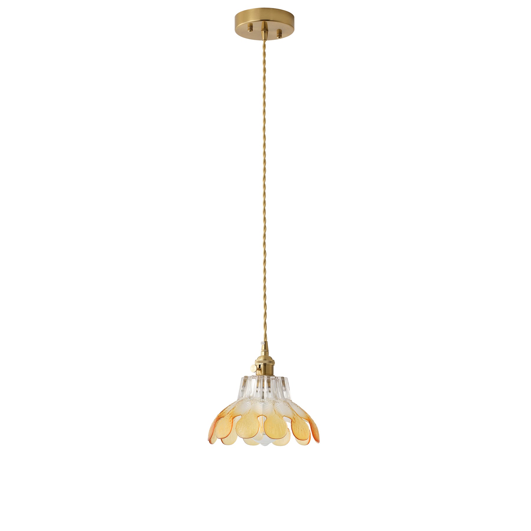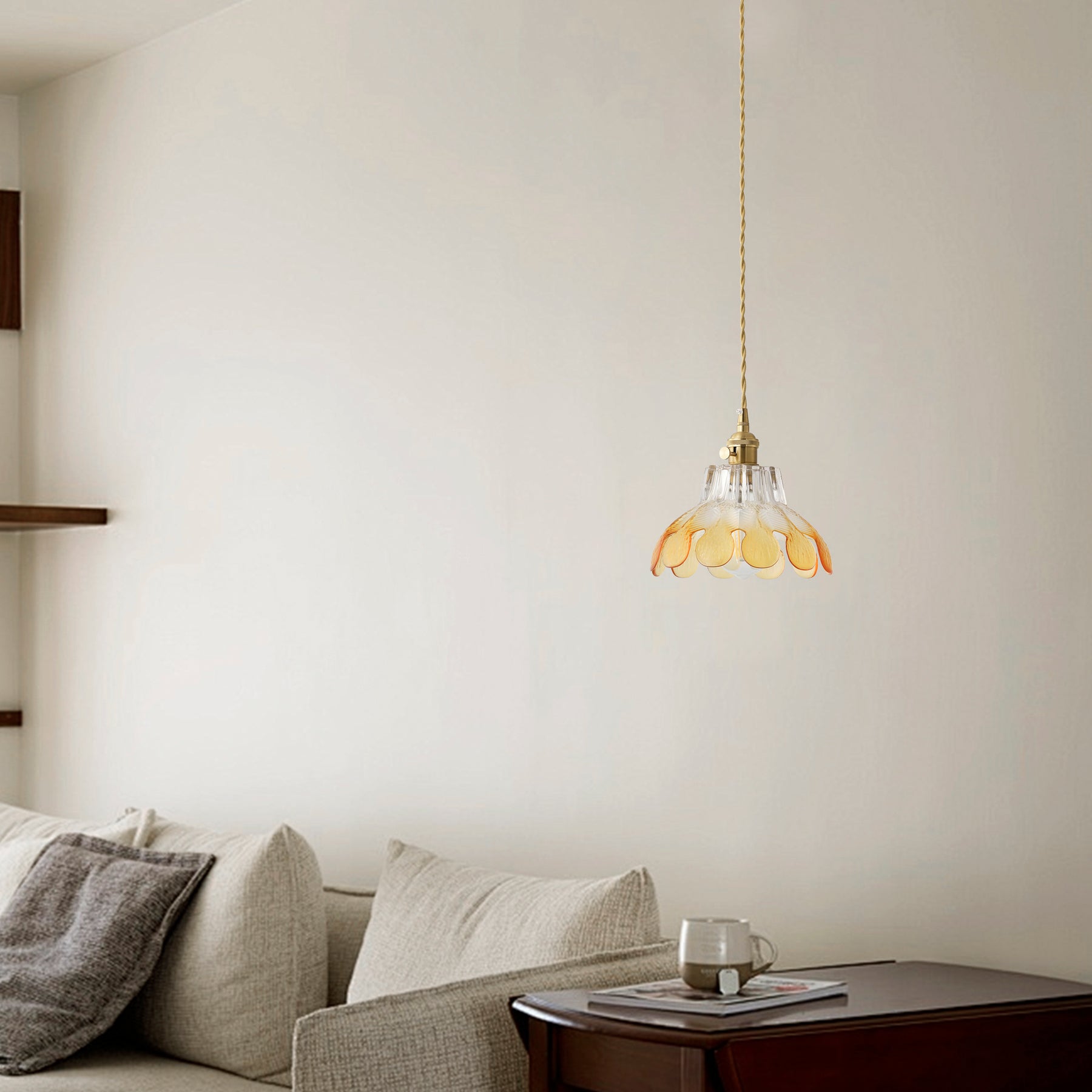 A lotus-inspired floral silhouette with layered glass creates a soft vintage statement. The textured gradient glass adds depth and warmth, while the copper-tone finish brings a refined retro look.