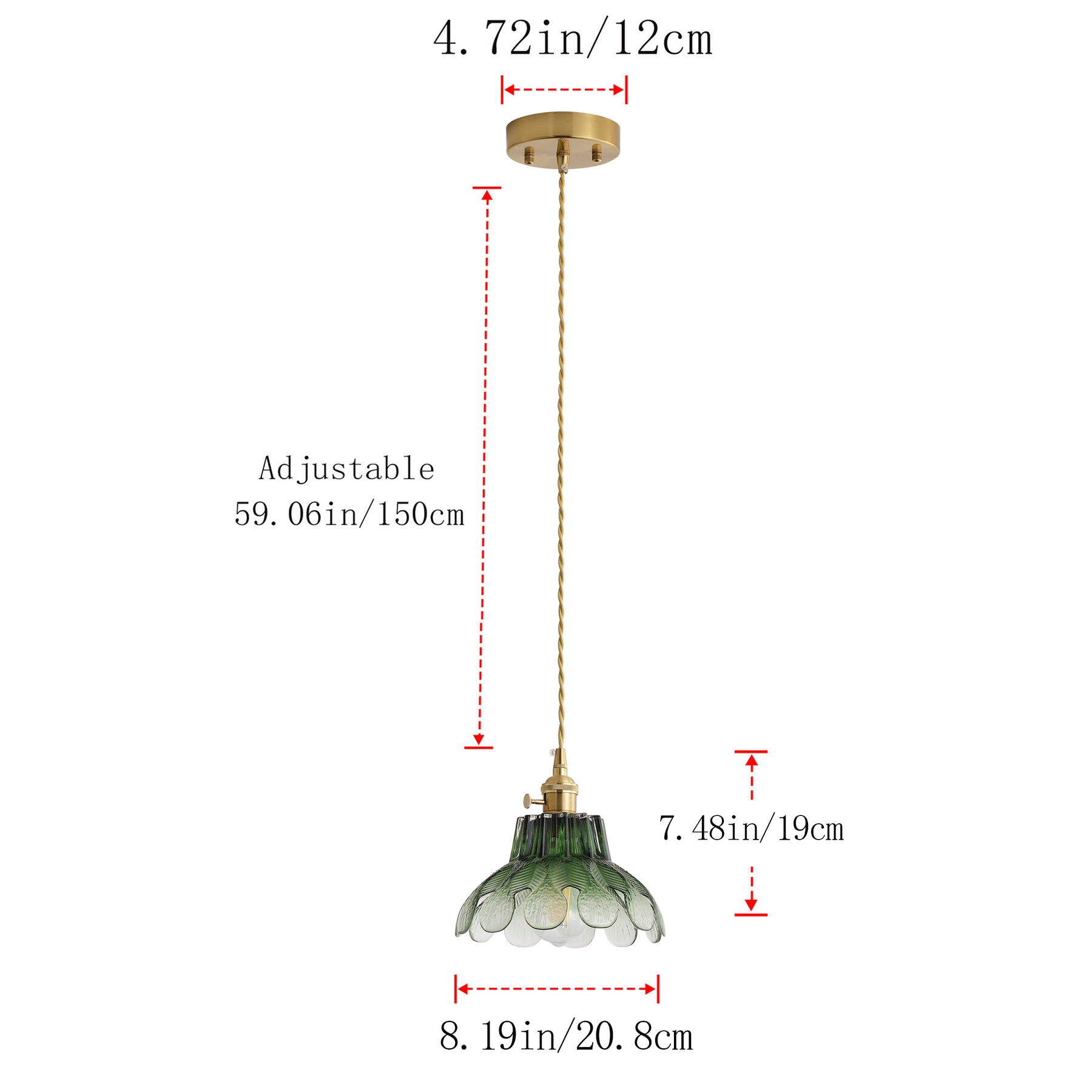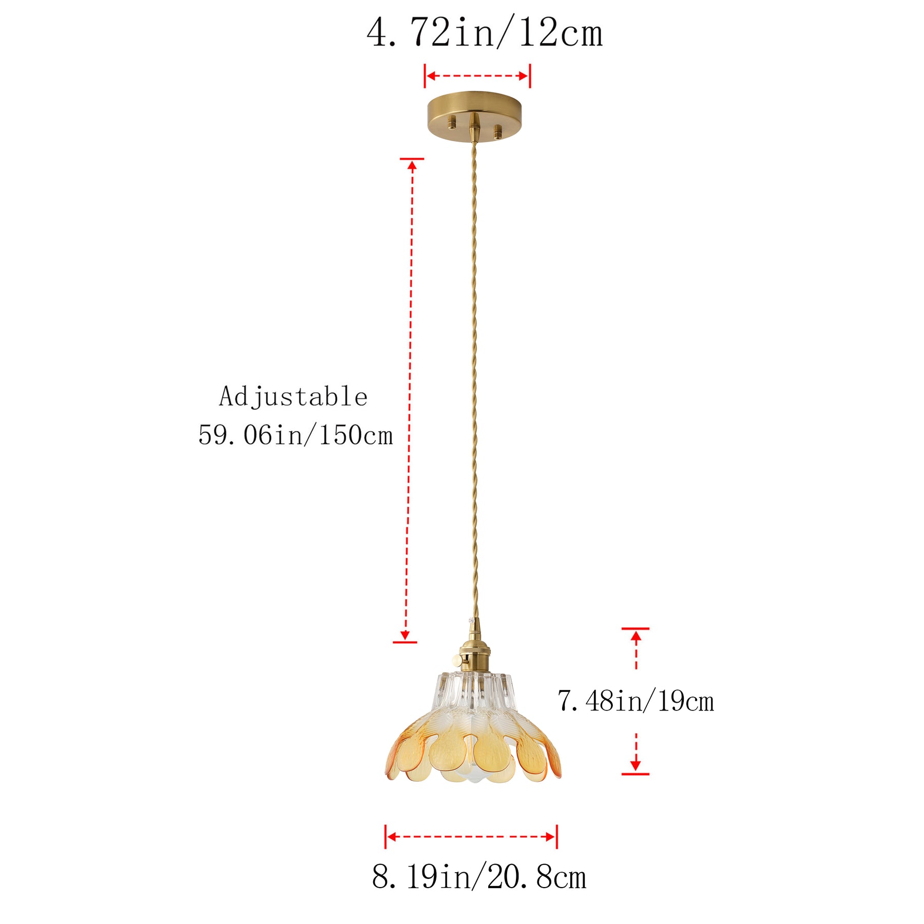 Designed for standard ceiling mounting with a sturdy metal canopy. Equipped with a braided twisted cord and inner 18AWG 3321 black and white wires plus a bare copper ground wire for reliable connection.